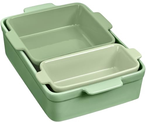 Sweejar Ceramic Bakeware Set of 4, Casserole Dishes for Oven, Rectangular Baking Dish with Handles, Lasagna Pans Deep for Cooking, Gratin, Roasting, Banquet and Daily Use (Turquoise)