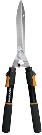 Fiskars Power Lever Hedge Shears, Precision-Ground Gator-Blade Serrated Steel Grips Branches, Multiplies Leverage for Easier Trimming & Shaping Shrubs, Shock-Absorbing Bumper & SoftGrip, 8" Blades