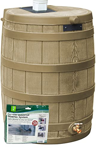 Ample 50 Gal Size Collects up to 50 gallons of rainwater to conserve water at home and is compatible with the Algreen Rain Barrel pump kit (not included)