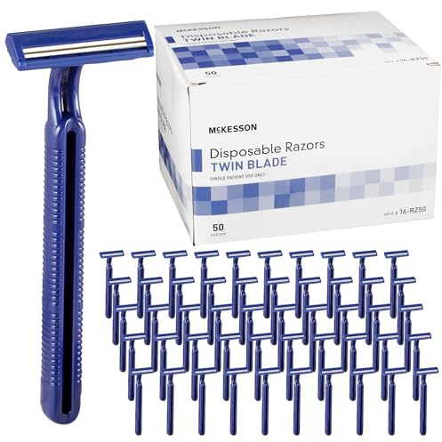 McKesson Disposable Razors [100 Count] – Twin Blade Bulk Shaving Razors for Men & Women, Stainless Steel, Blue, Single-Use for Medical Clinics, Tattoo, Travel, Camping & Salon Care