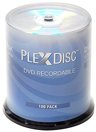 PlexDisc DVD-R Blank Discs 4.7GB : 16x Silver Top Disc Blank DVD Discs 100-Pack Shrink Wrap - Archival Quality for Photos Videos Data - (no Cake Box Container)