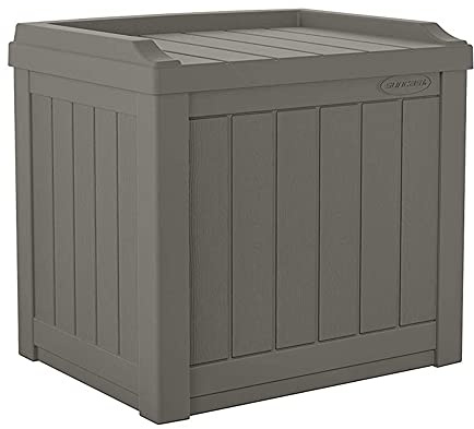 Suncast 22-Gallon Small Deck Box - Lightweight Resin Indoor/Outdoor Storage Container and Seat for Patio Cushions and Gardening Tools - Store Items on Patio, Garage, Yard - Stone Gray, Made in the USA