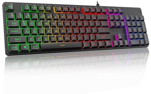 Dacoity Gaming Keyboard, Full Size RGB Backlit Quiet Computer Keyboard, Wrist Rest, Silent Keys, Multimedia Keys, Anti-ghosting, Waterproof Light Up USB Wired Keyboard for PC Mac Xbox Gamer Office