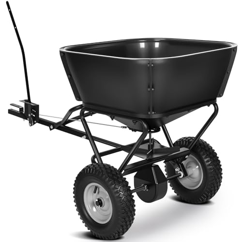 Garvee Tow Behind Broadcast Spreader, 85 LBS Capacity Seed Spreader with Hopper Cover & Universal Hitch, Adjustable Flow Control Lawn Spreader for for Seed, Fertilizer, Salt, Ice Melt, Black