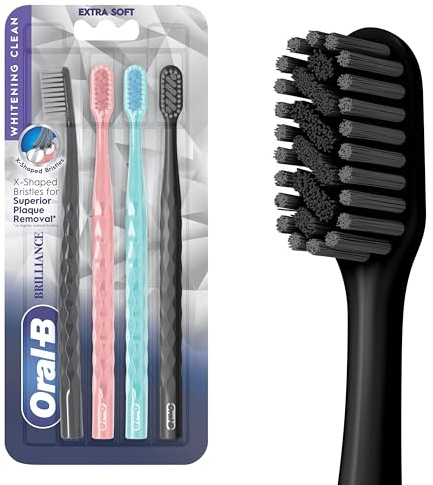 Oral-B 3D White Charcoal toothbrush, 2 count SOFT manual tootbrush pack, Whitens teeth, removes plaque and stains, tongue scraper tooth brush