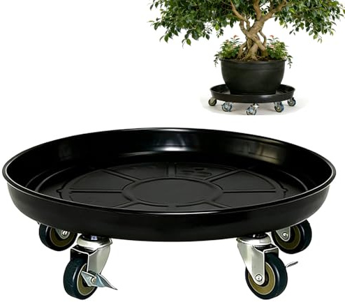 Bosmere 16" Plant Caddie - Heavy-Duty Rolling Plant Stand with Locking Wheels, 500 lb Capacity – Durable Plant Caddy for Indoor/Outdoor Use, Black