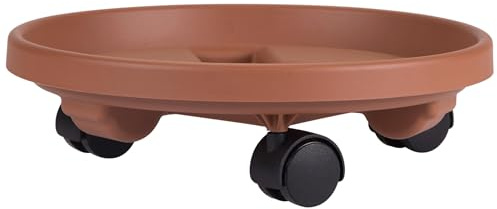 Bloem 16" Terra Cotta Round Planter Pot Caddy with Wheels, 150lb Capacity
