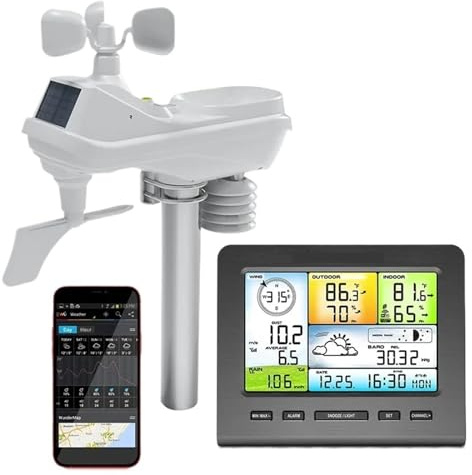 Weather Station with Rain Gauge -- This multifunction weather station includes a self-emptying and maintenance free rain gauge outdoor, which make it unique from other weather stations. This device allows for accurate measurement of rainfall, keeping you informed about latest precipitation levels around your home. Monitoring rainfall enables optimal watering schedules and helps identify potential flood and unsafe driving conditions.