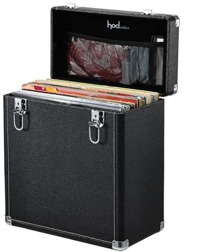 LP&No.1 Vintage Vinyl Record Storage Case, Vinyl Carrying Box, Black