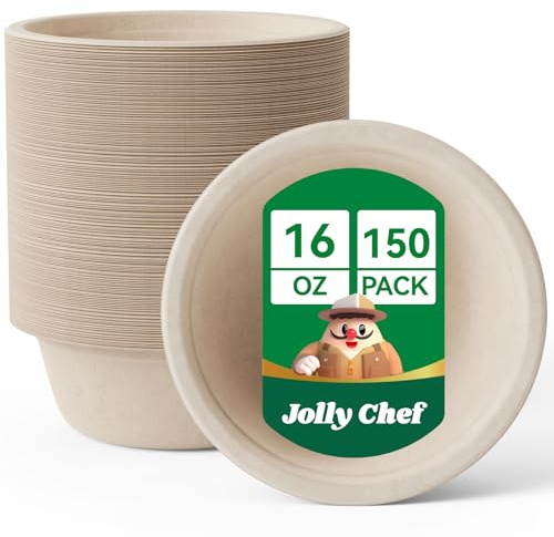 ECOLipak 20 OZ 150 Count Paper Bowls, Disposable Compostable Large Soup Bowl, Heavy Duty Bagasse Bowls for Family Lunch, Dinner Meals, Camping, Party
