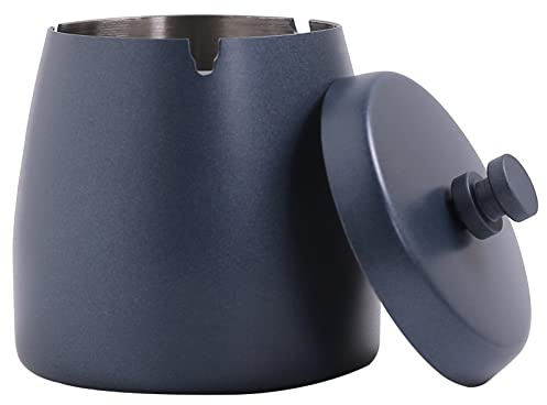 Ashtray with Lid for Cigarette, Stainless Steel Smokeless Odorless Windproof Ashtrays for Home Office Tabletop Outside Patio Outdoor Balcony(3.54"x3.0"x3.38")