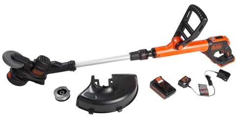 BLACK+DECKER 20V MAX Weed Wacker Cordless String Trimmer Edger Lawn Tool, 10-Inch Electric Weed Eater with Automatic Feed Spool, Ergonomic, Battery and Charger Included (LST201)